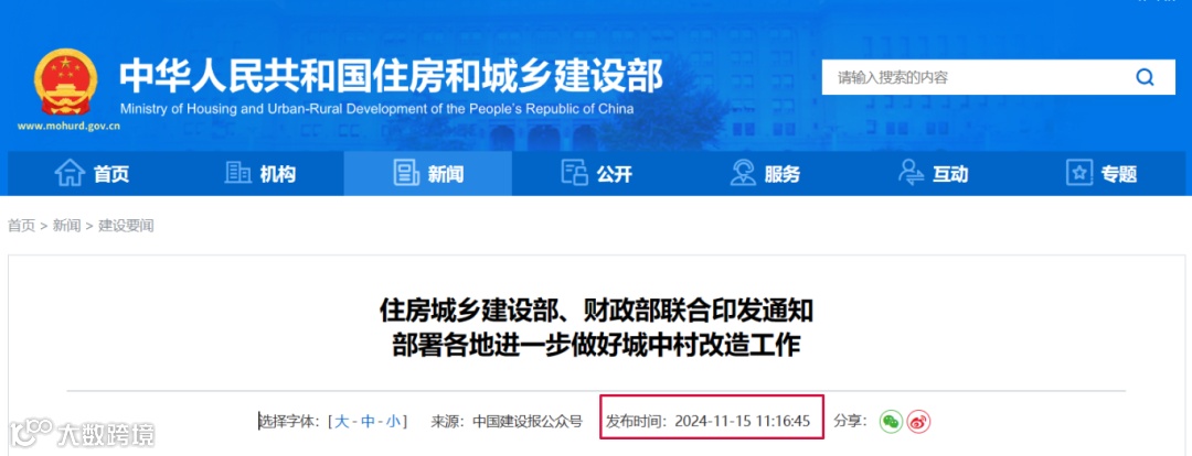 2024年11月15日消息,住建部、财政部联合印发通知,提出:
