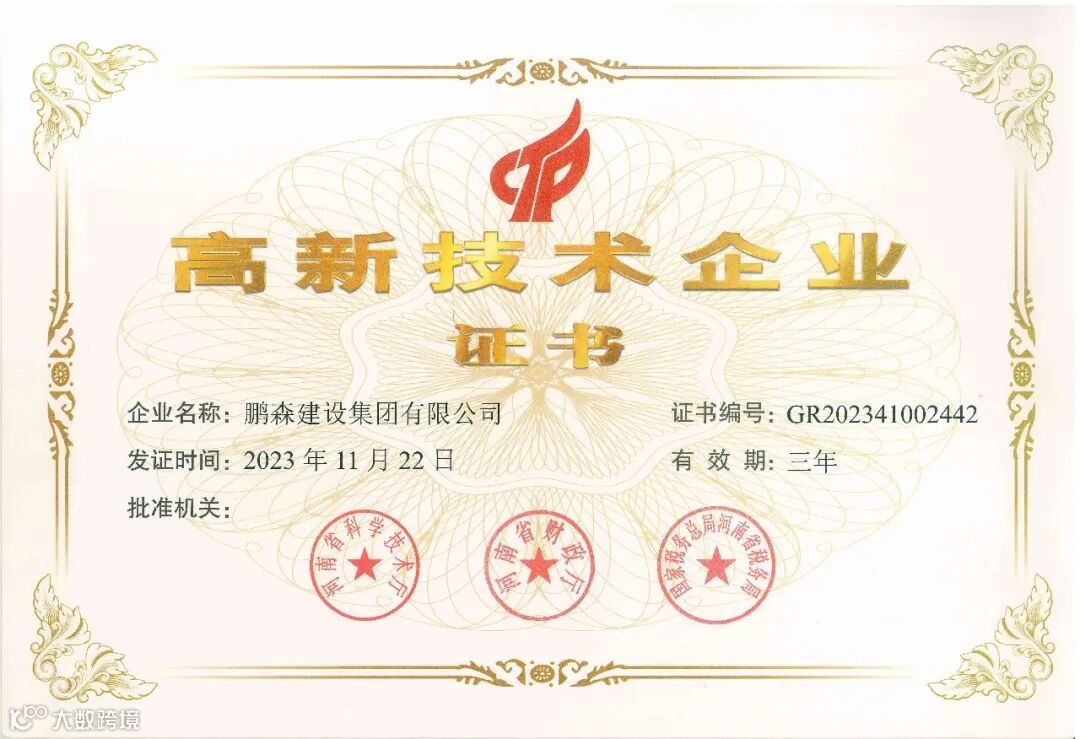 自集团成立以来,始终重视知识产权研发保护工作,关注知识产权创新成果转化运用。经过不断地探索与创新,公司于2024年成立“鹤壁市绿色装配式建筑工程技术研究中心”,拥有房建、市政、装饰装修、环保系统等发明专利和实用新型专利50余项,被评为国家级高新技术企业、科技型企业,河南省专精特新企业、知识产权优势企业、建筑业专业承包骨干企业,连年荣获“省/市建筑业诚信典型企业”,“省/市建筑业先进企业、技术创新企业”,“省/市市政公用工程优秀施工企业”,“省建筑装饰装修行业诚信企业”,“最具影响力建筑企业”、“十佳建筑企业”等多项荣誉。承接项目工程荣获河南省建设工程项目管理成果三类成果、省级QC荣誉、市级QC荣誉20多项,省级安全文明工地3个,市级优良工程奖3项。