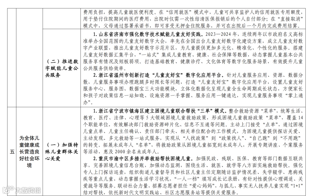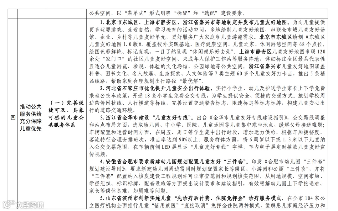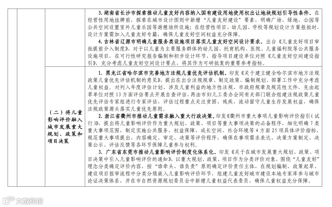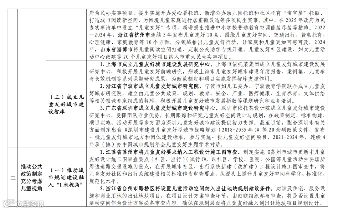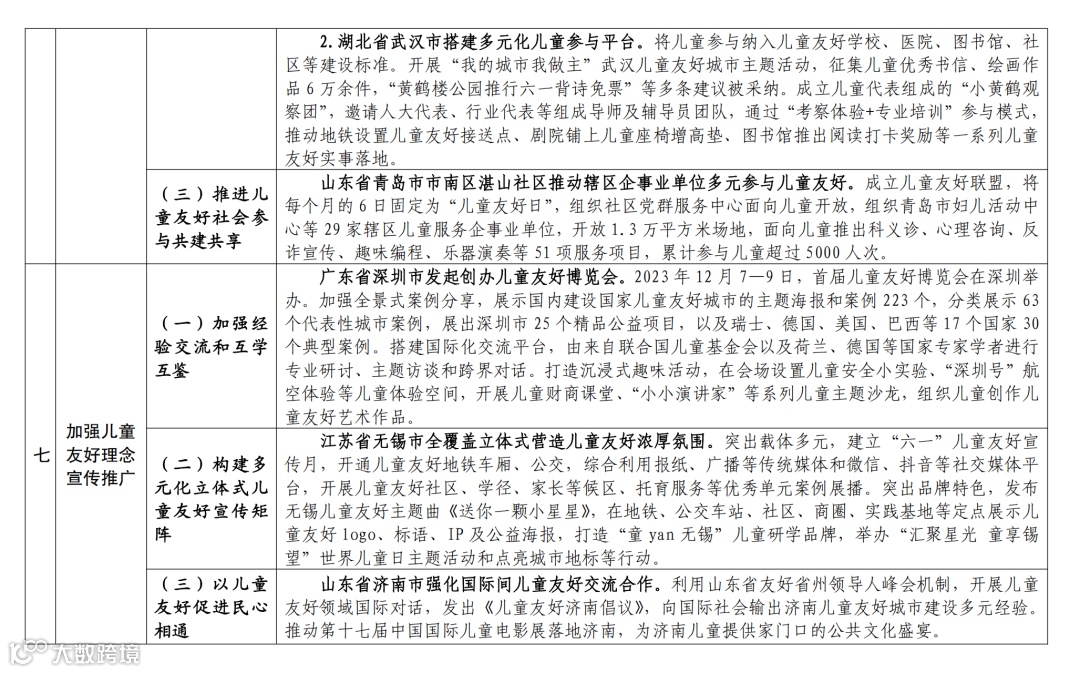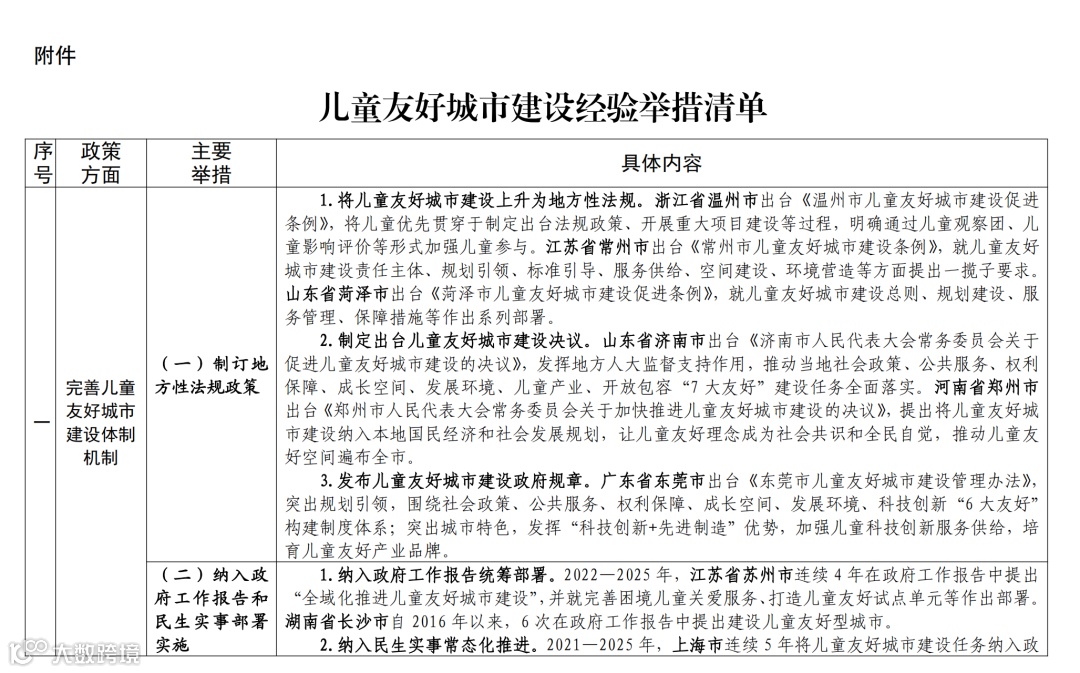 儿童友好城市建设经验举措清单如下: