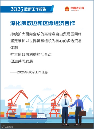 深化多双边和区域经济合作。持续扩大面向全球的高标准自由贸易区网络,推动签署中国—东盟自贸区3.0版升级协定,积极推动加入《数字经济伙伴关系协定》和《全面与进步跨太平洋伙伴关系协定》进程。坚定维护以世界贸易组织为核心的多边贸易体制,扩大同各国利益的汇合点,促进共同发展。