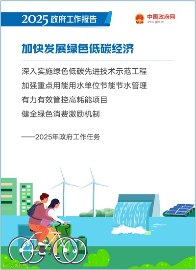 加快发展绿色低碳经济。完善支持绿色低碳发展的政策和标准体系,营造绿色低碳产业健康发展生态。深入实施绿色低碳先进技术示范工程,培育绿色建筑等新增长点。完善资源总量管理和全面节约制度,加强重点用能用水单位节能节水管理,有力有效管控高耗能项目。加强废弃物循环利用,大力推广再生材料使用。健全绿色消费激励机制,推动形成绿色低碳的生产方式和生活方式。