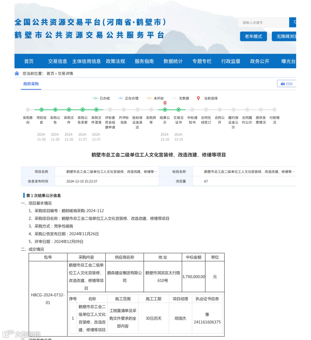 【中标喜讯】热烈祝贺鹏森建设集团中标鹤壁市总工会二级单位工人文化宫装修、改造改建、修缮等项目!