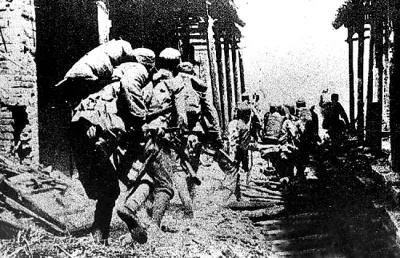 △中国军队在台儿庄与日军展开激烈巷战