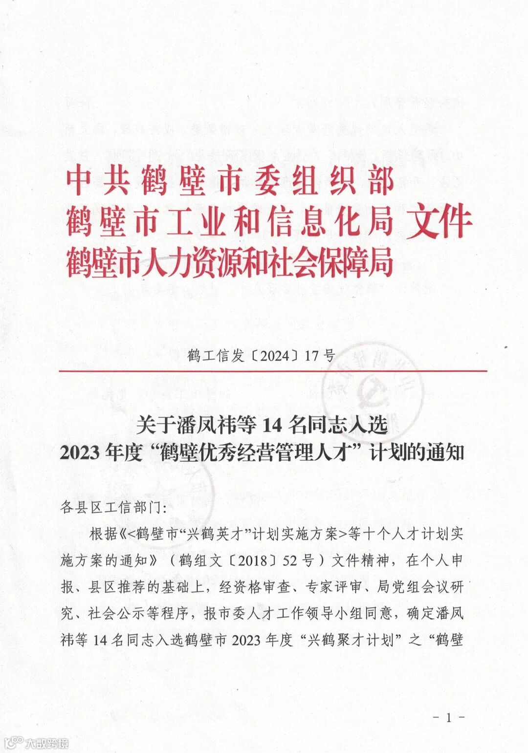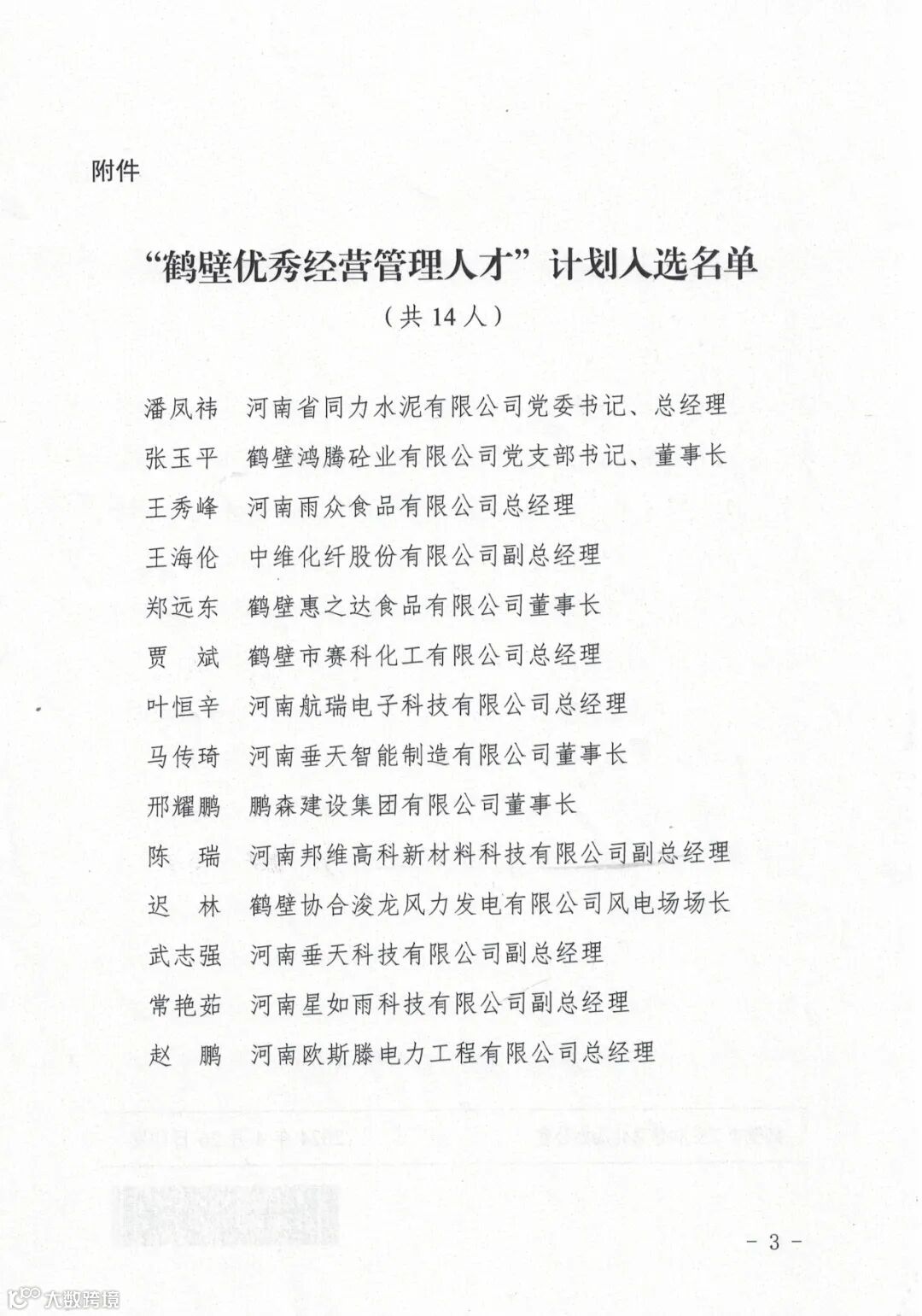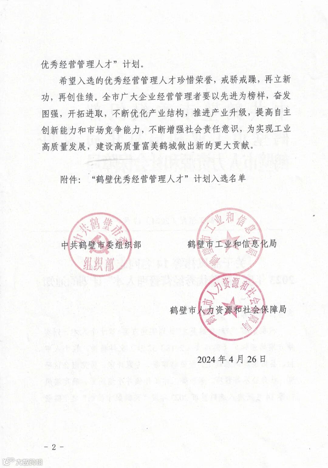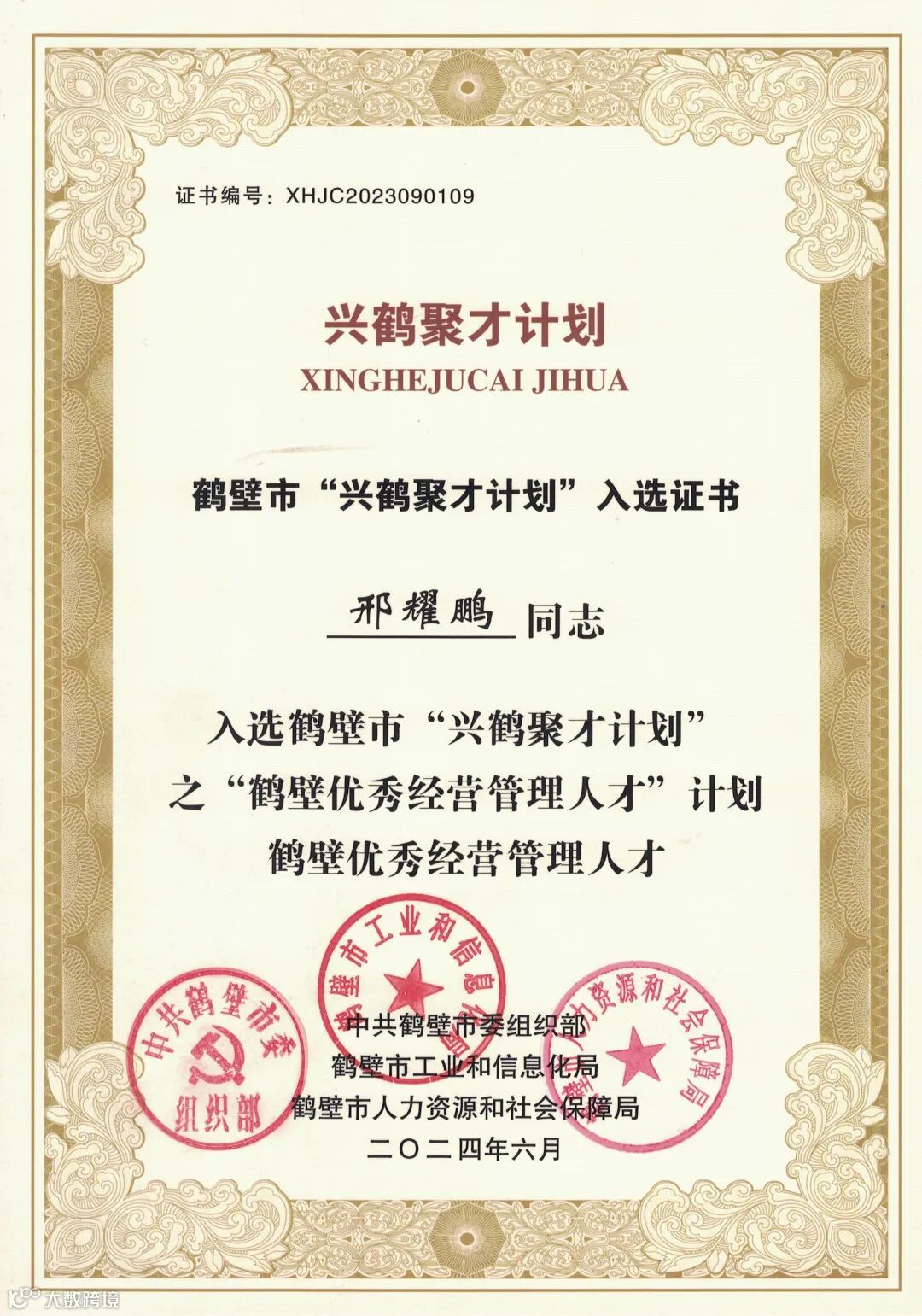 “鹤壁优秀经营管理人才”