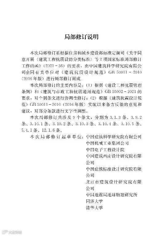 住建部发布国家标准《建筑抗震设计规范》(GB50011-2010)局部修订的条文,自2024年8月1日起实施