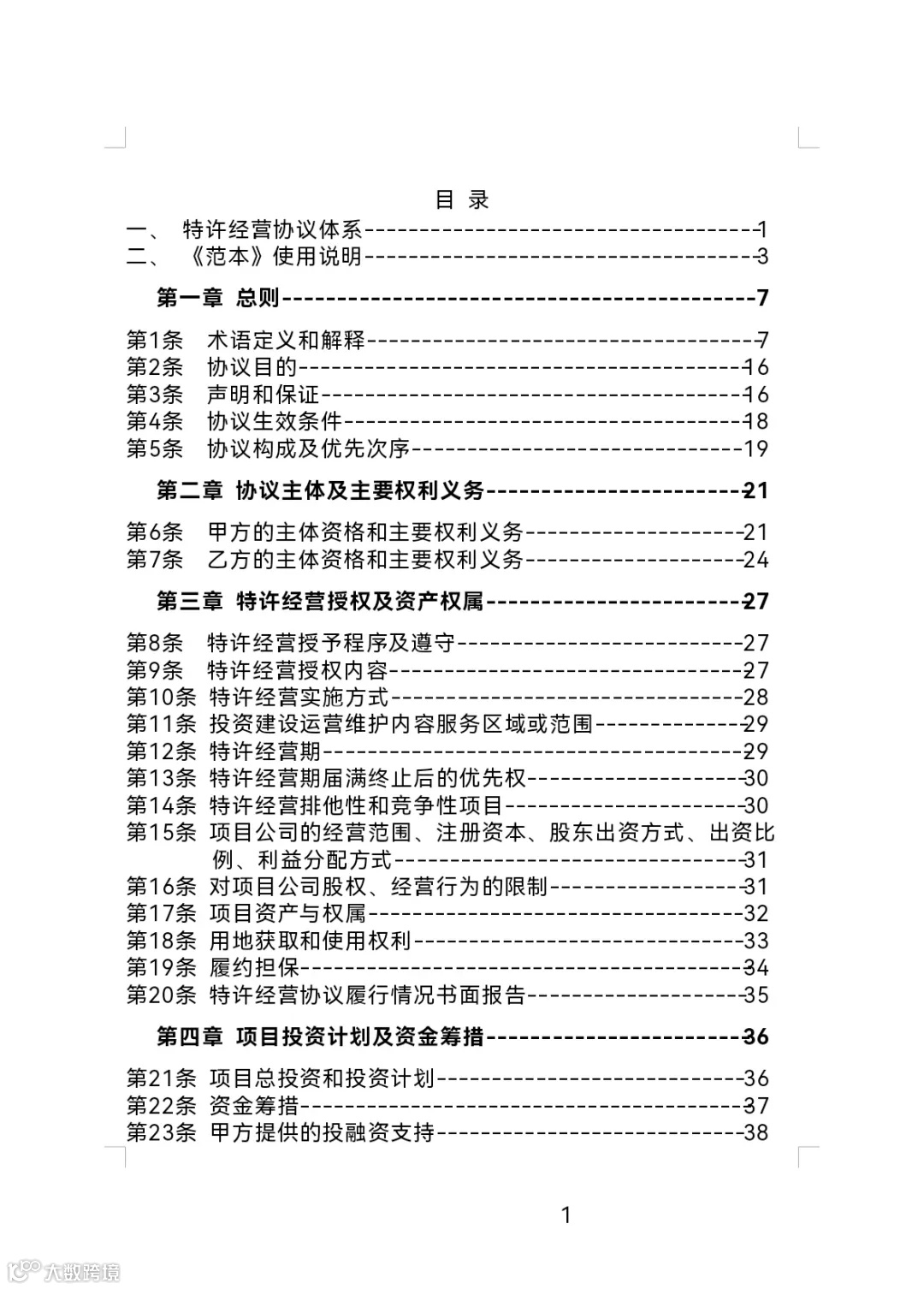 政府和社会资本合作项目特许经营协议(编制)范本