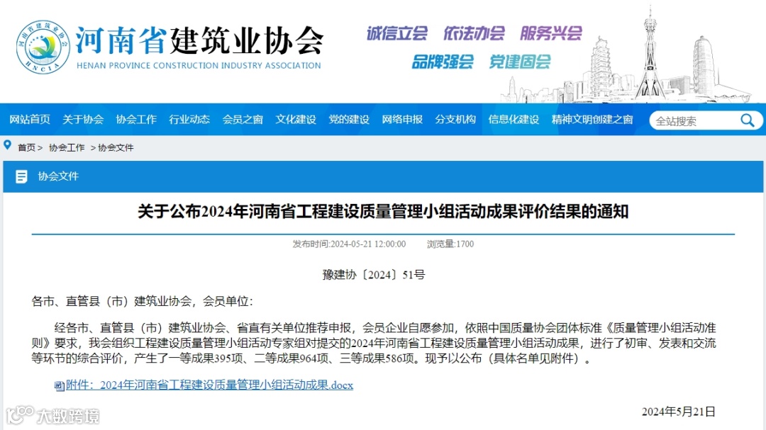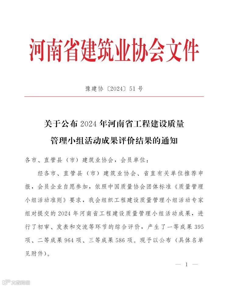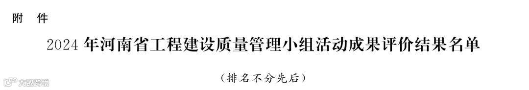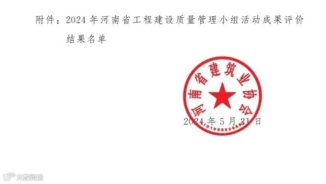 近日,2024年河南省工程建设质量管理小组活动成果评价结果公示。