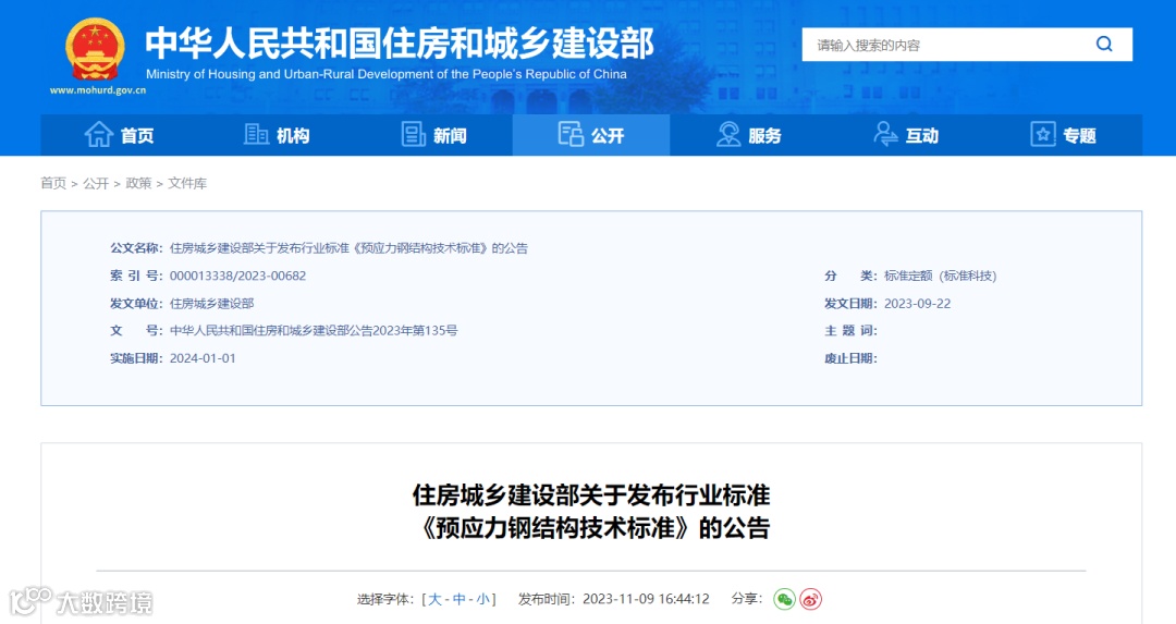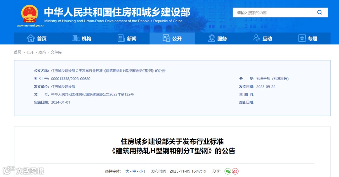 近日,住建部发布8项行业标准《建筑用热轧H型钢和剖分T型钢》《城市信息模型应用统一标准》《城市信息模型数据加工技术标准》《预应力钢结构技术标准》《城市道路绿化设计标准》《生活垃圾渗沥液处理技术标准》《生活垃圾焚烧飞灰固化稳定化处理技术标准》《生活垃圾转运站运行维护技术标准》。