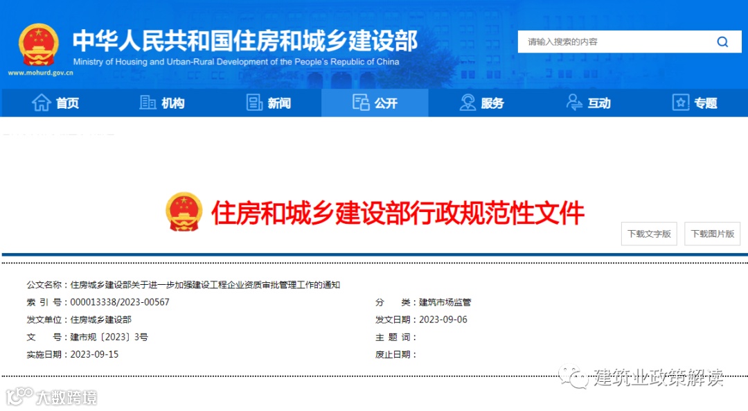 住房城乡建设部发布《关于推进工程建设项目审批标准化规范化便利化的通知》(建办〔2023〕48号)。《通知》明确: