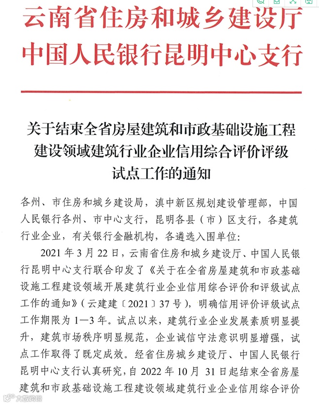 云南:信用评价结果不再应用于工程招投标!平台即行关闭,原文件规定同时废止!