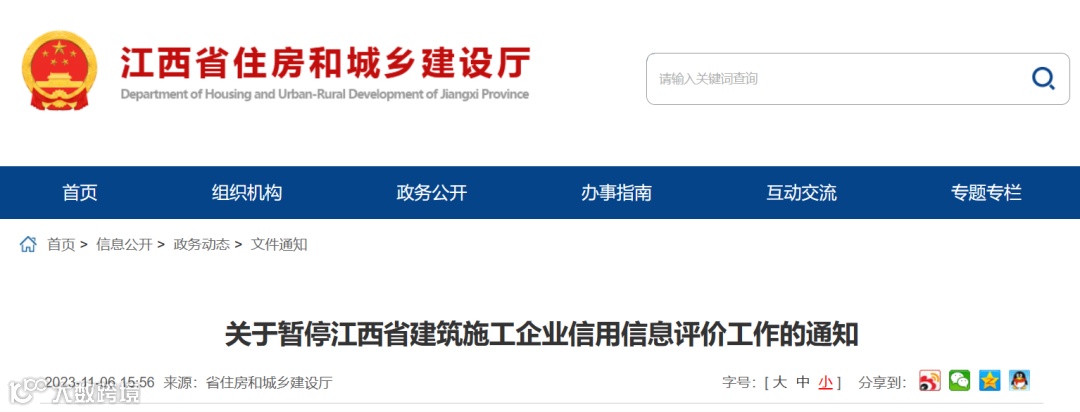 江西:2023年11月7日起,全省房屋市政工程项目招投标,暂停运用信用评价结果!取消报价承诺法评标方式!