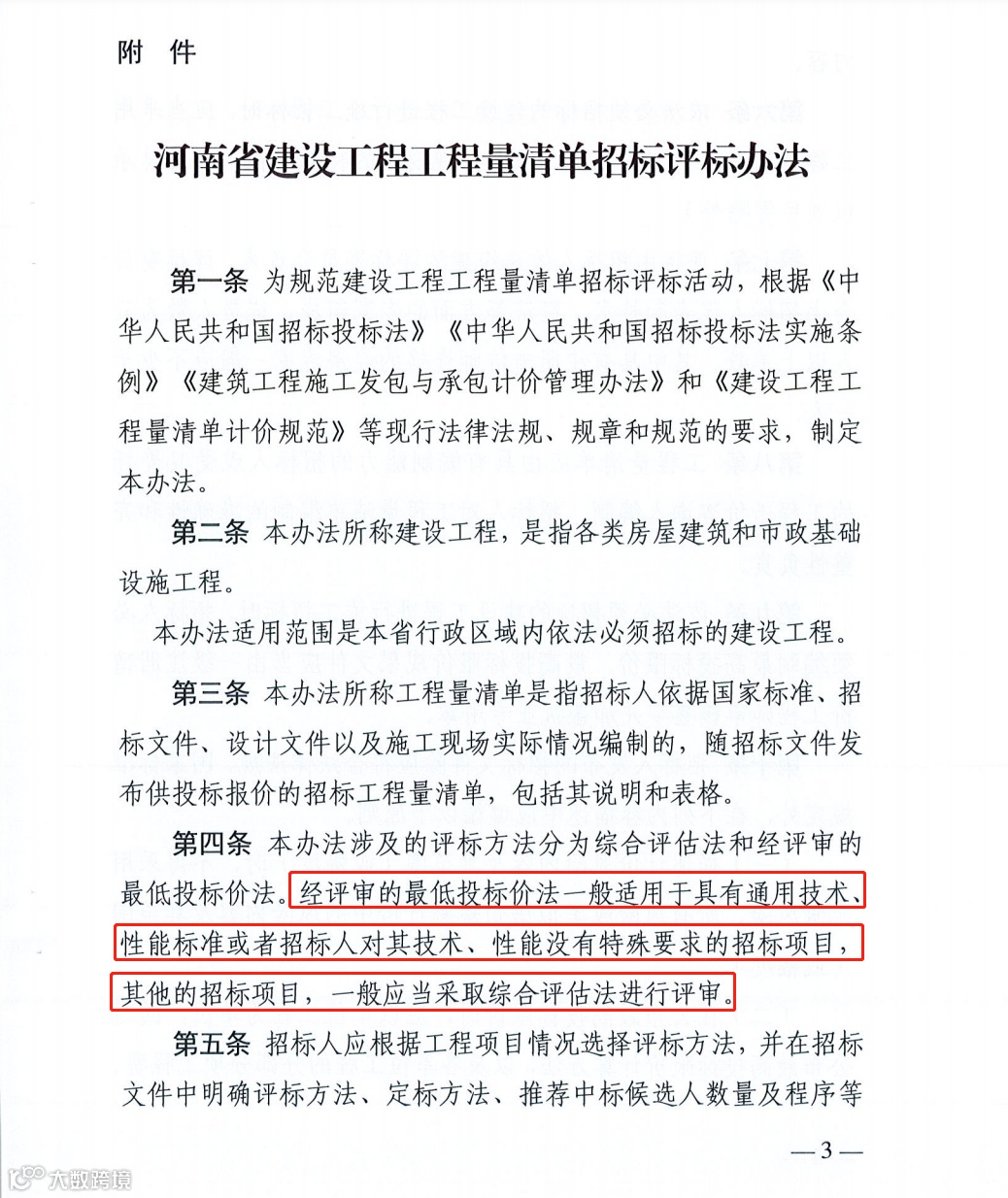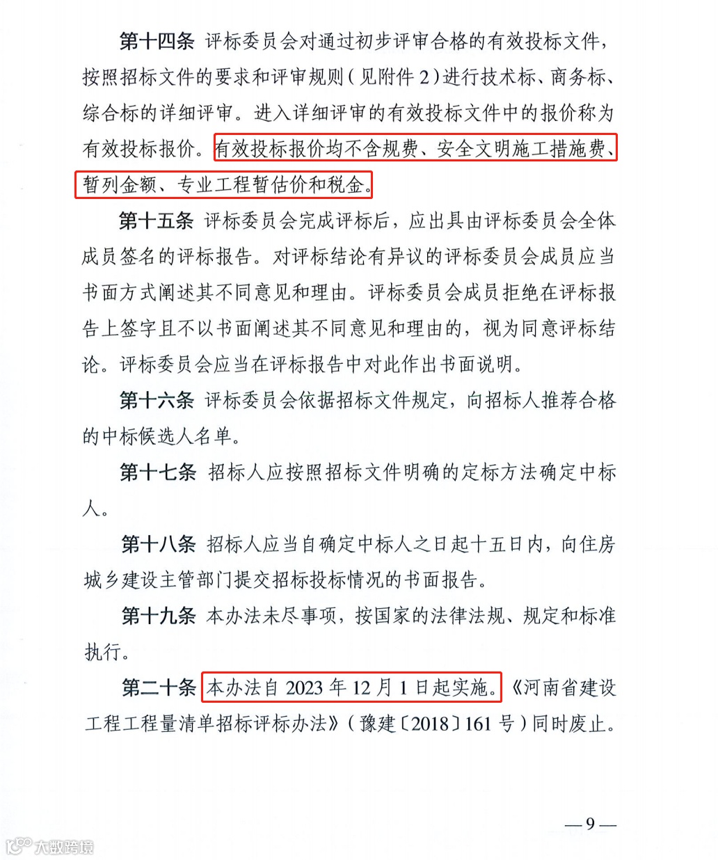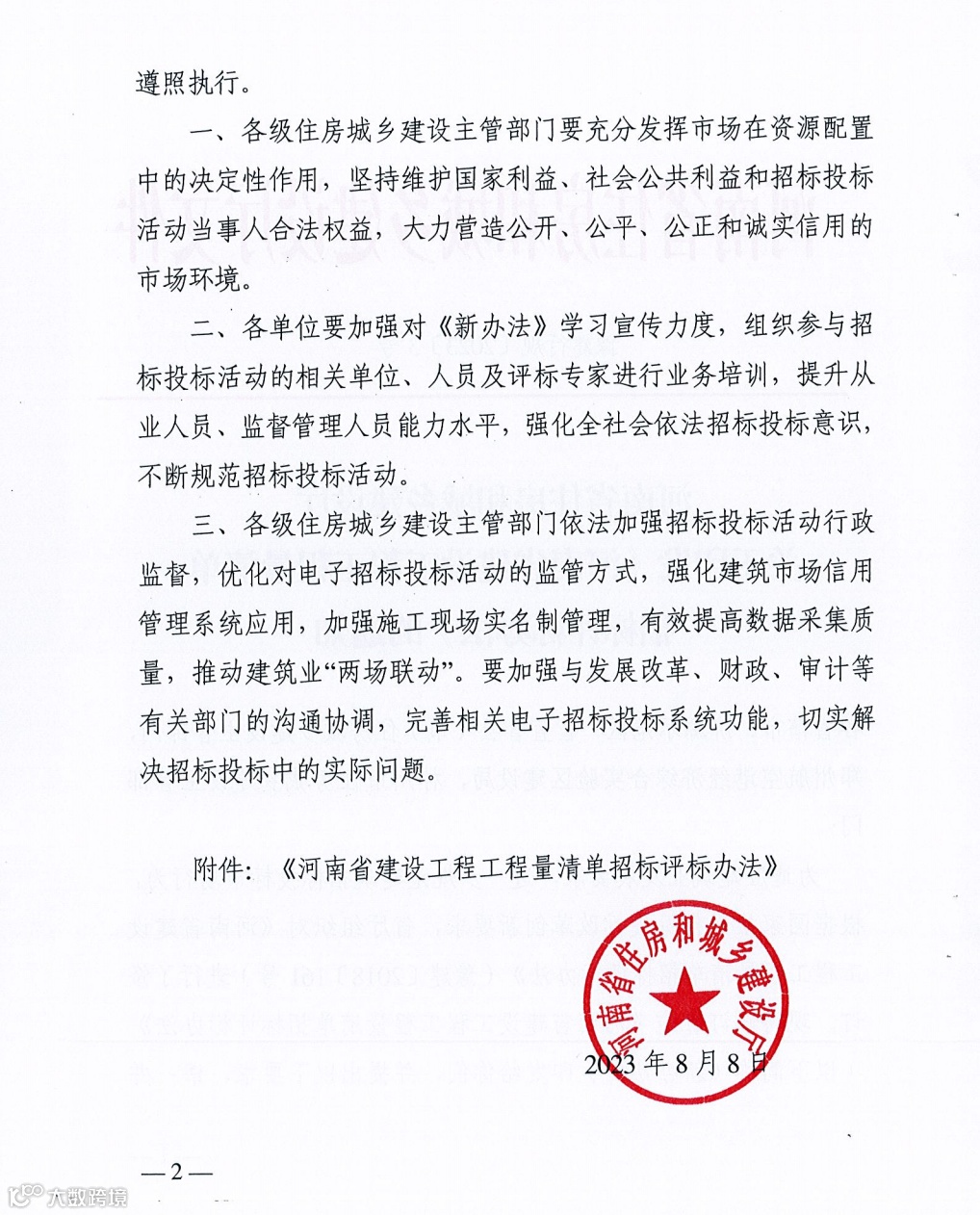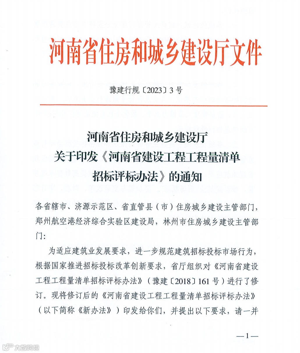 8月14日,河南省住建厅印发《河南省建设工程工程量清单招标评标办法》,自2023年12月1日起实施。