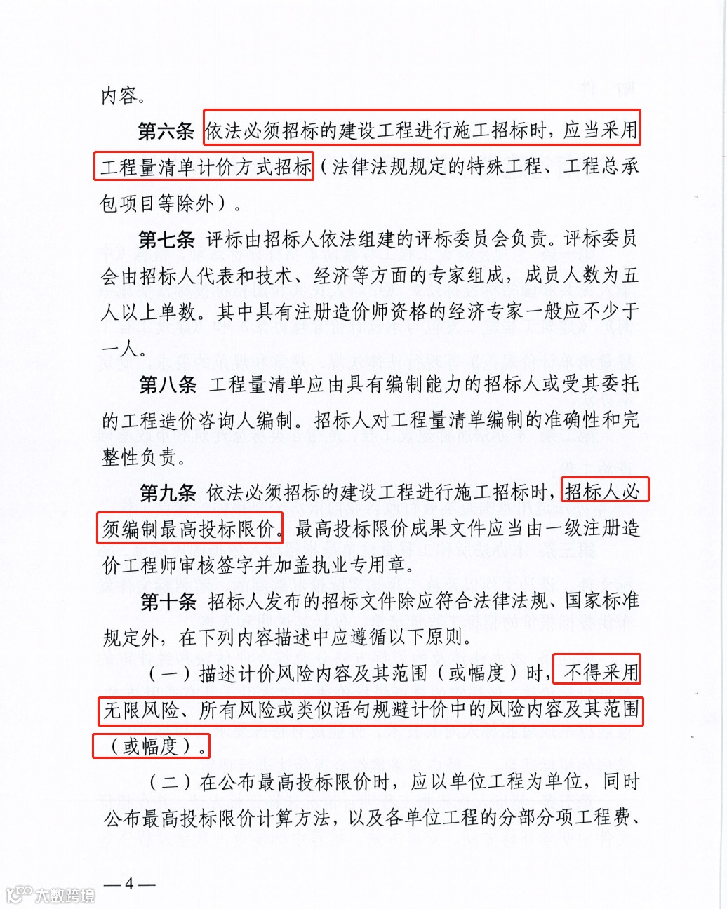 第六条 依法必须招标的建设工程进行施工招标时,应当采用工程量清单计价方式招标。