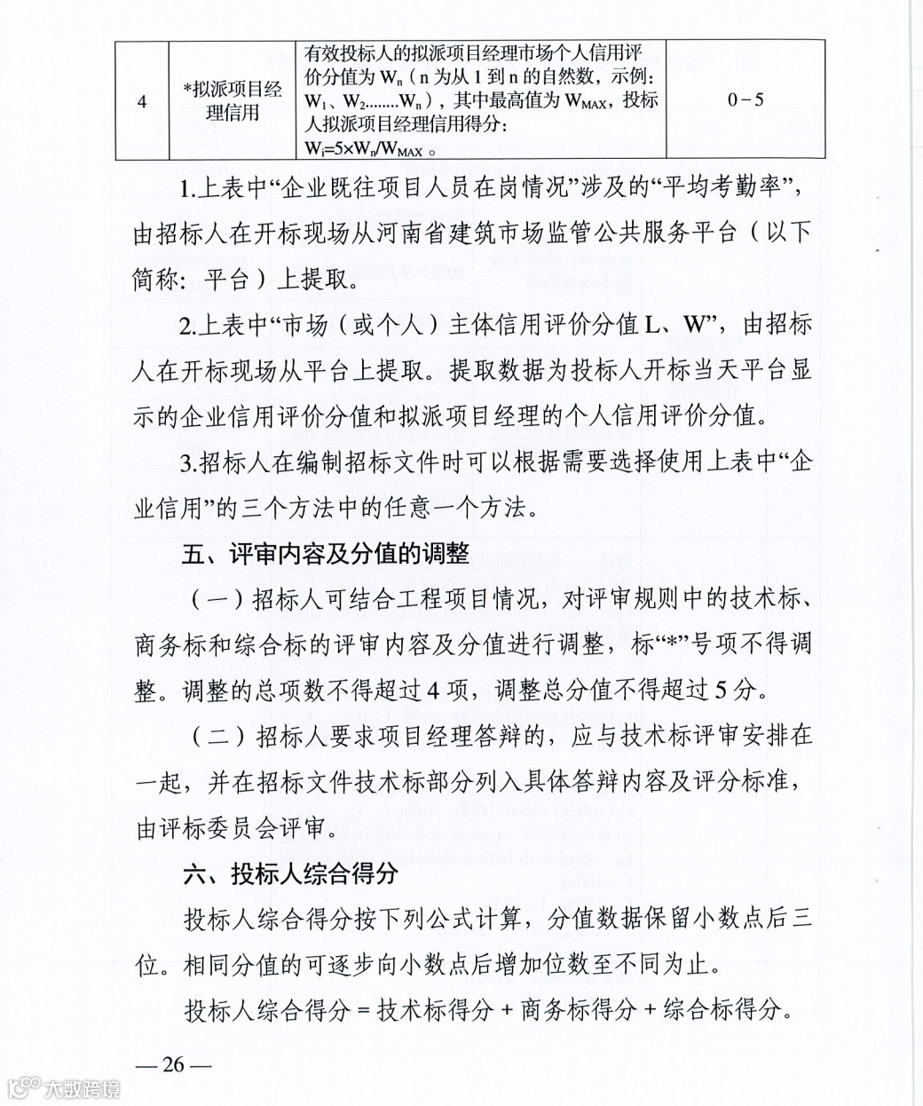 设置企业和项目经理信用要求时,应统一使用河南省建筑市场信用评价分值,不得另行设置奖项加分项或扣分项以及不良行为扣分项。