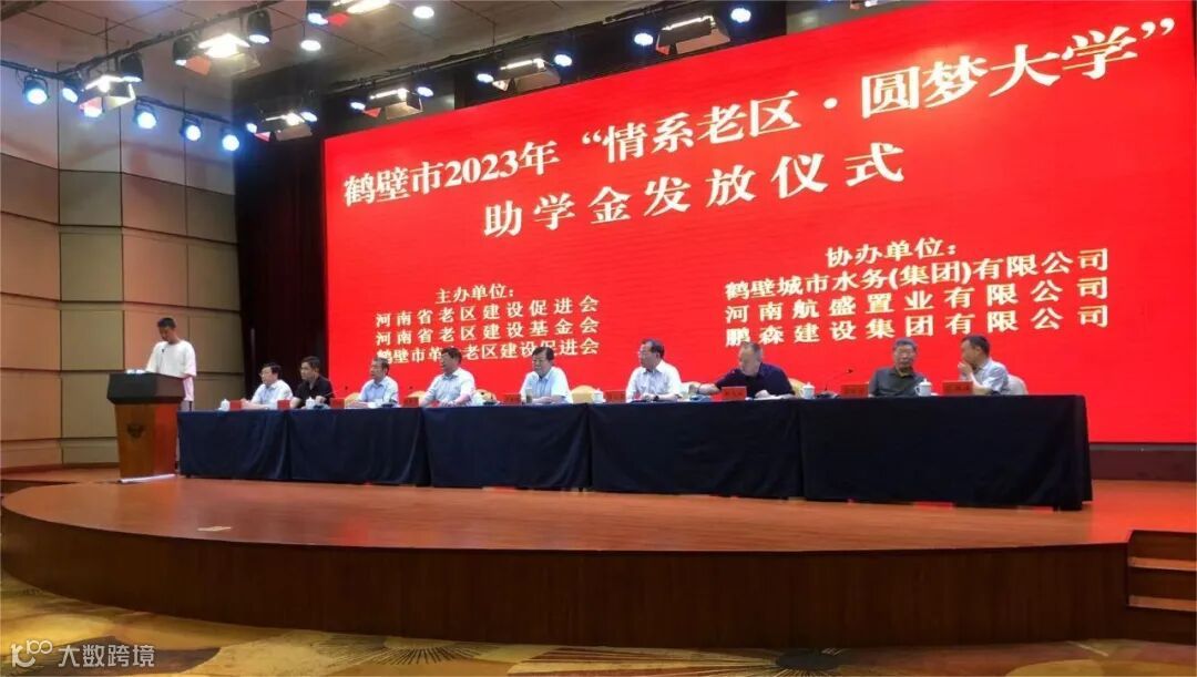 8月24日上午,鹤壁市2023年“情系老区 · 圆梦大学”助学金发放仪式在鹤壁市迎宾馆举行。省老促会、省老区建设基金领导、市委领导、市老促会领导、鹏森建设集团代表及其他代表出席本次会议。此次捐赠活动由河南省老区建设促进会、河南省老区建设基金会、鹤壁市革命老区建设促进会主办,鹏森建设集团有限公司、鹤壁市水务(集团)有限公司、河南航盛置业有限公司协办,旨在为革命老区困难学子捐赠发放助学金,圆梦大学。