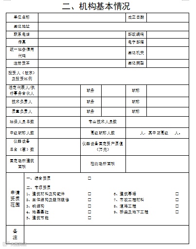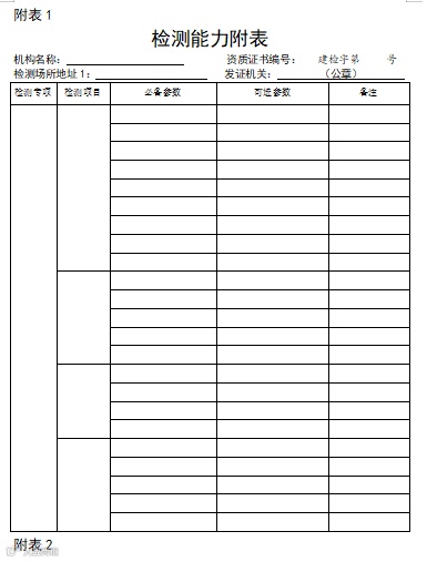 附件:1.《建设工程质量检测机构资质申请表》格式