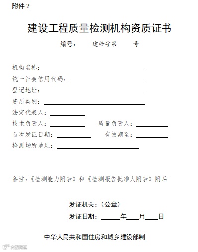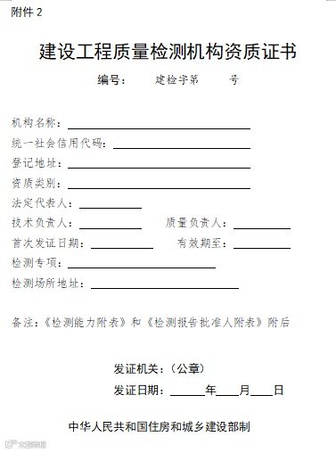 2.《建设工程质量检测机构资质证书》格式