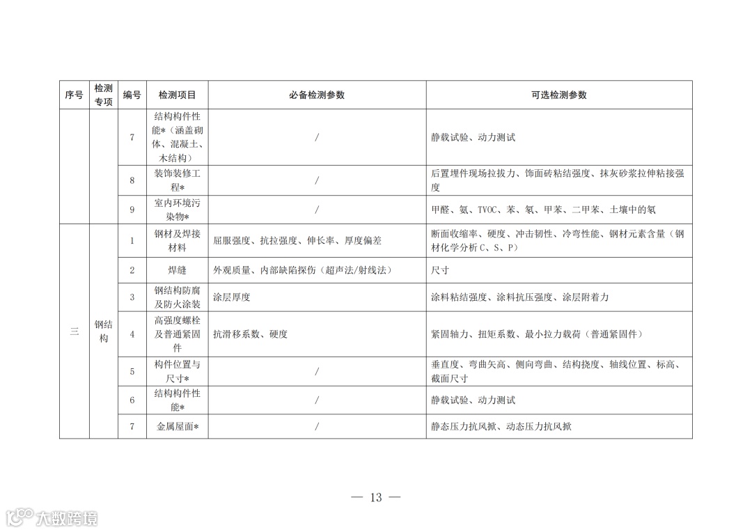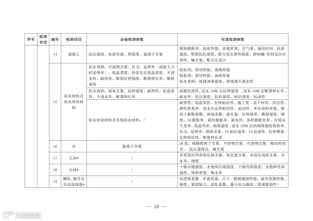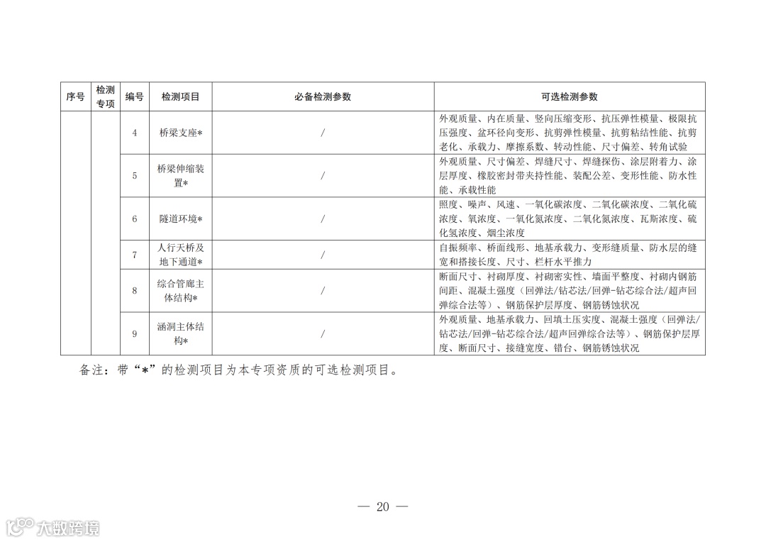 5、资质许可机关可结合地方实际,根据《办法》规定的检测业务范围,按照最新的工程建设标准规范要求,适当增减《资质标准》附件2中的可选检测项目或可选检测参数。
