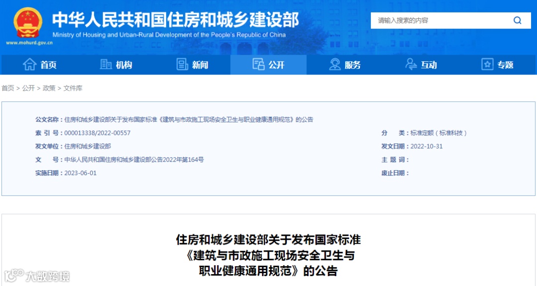 为了在建筑与市政工程施工中保障人身健康和生命财产安全、生态环境安全,满足经济社会管理基本需要,住房和城乡建设部制定国家标准《建筑与市政施工现场安全卫生与职业健康通用规范》,该标准自6月1日起施行。