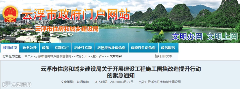 3月27日,云浮市住建局发布《关于开展建设工程施工围挡改造提升行动的紧急通知》。