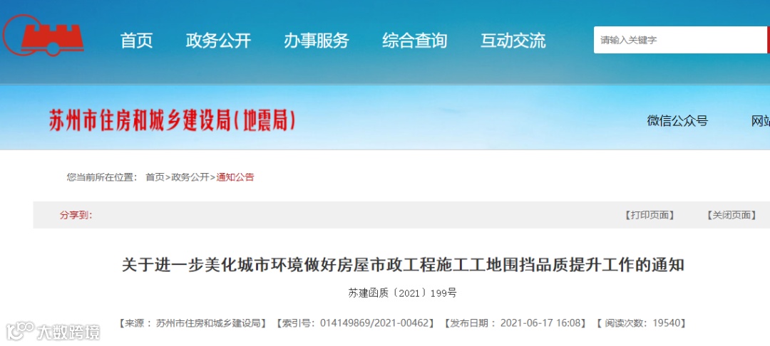 2021年6月17日,苏州市住建局发布《关于进一步美化城市环境做好房屋市政工程施工工地围挡品质提升工作的通知》,2021年8月1日起开始执行。