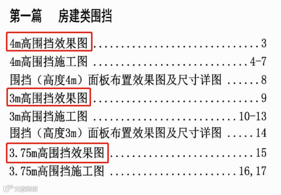根据《图集》显示,房建类围挡高度有3个档位,分别为4m、3m和3.75m。