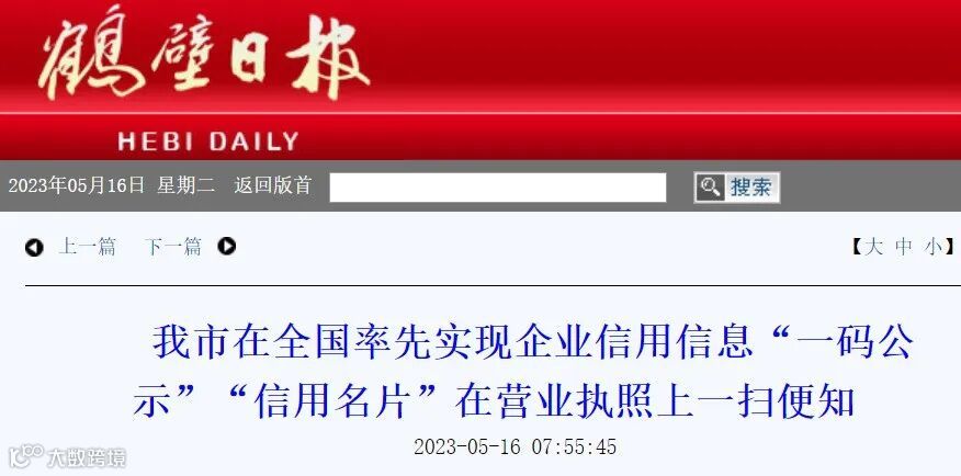 我市在全国率先实现企业信用信息“一码公示”“信用名片”在营业执照上一扫便知 鹏森建设集团有限公司