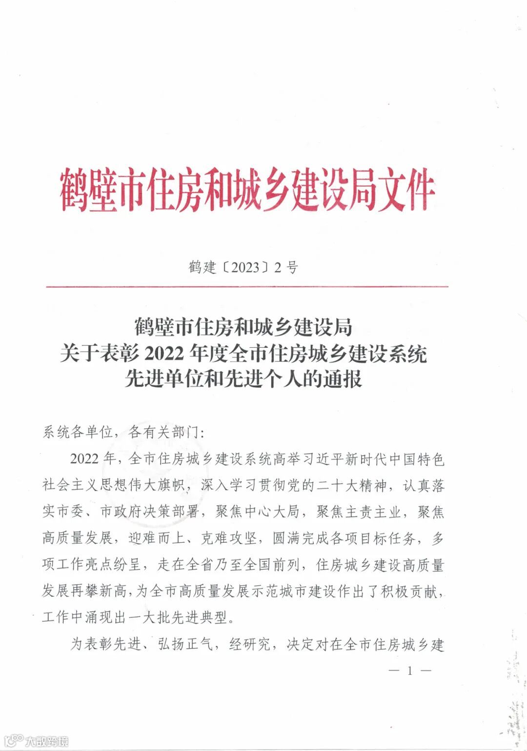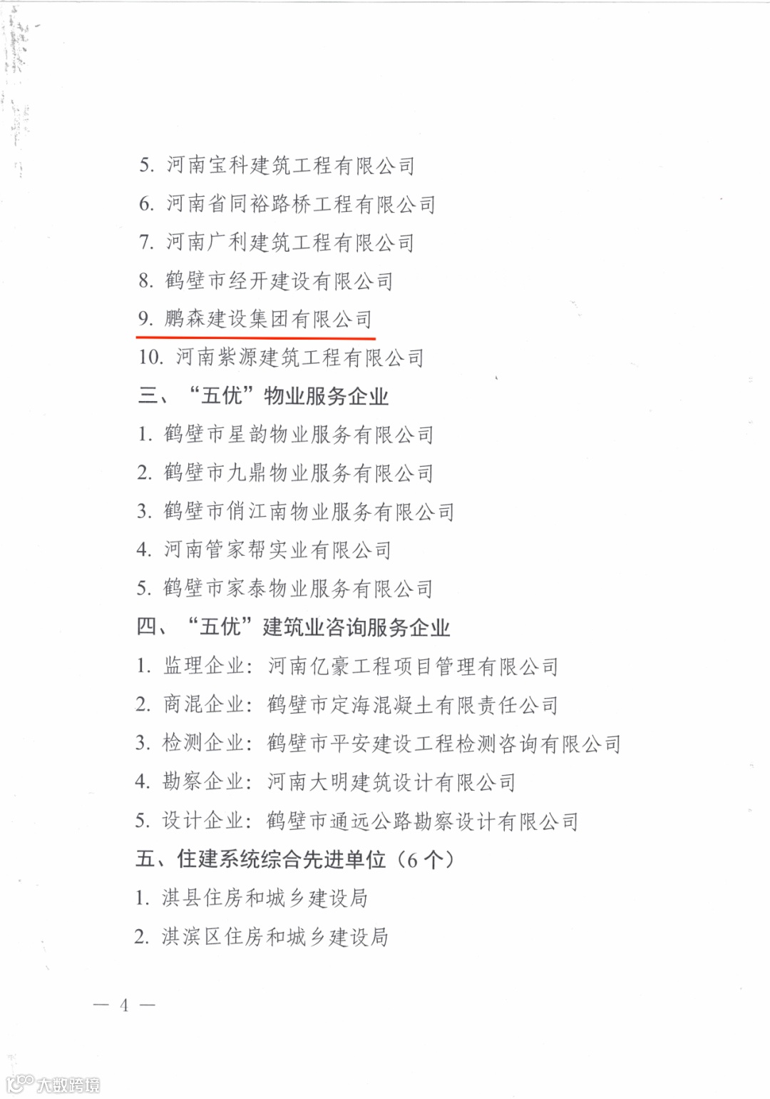 鹏森建设集团有限公司荣获鹤壁市“十佳”建筑企业”。获此荣誉是对鹏森建设集团综合实力的高度认可。鹏森建设集团将以此为动力,以“12741”工程为抓手,以“开局就决战、起步就冲刺”的姿态,锚定发展定位,聚焦工作重心,担当作为、守正创新, 踔厉奋发、勇毅前行,奋力谱写鹏森建设集团高质量发展新篇章,为建设新时代高质量发展示范城市作出更大贡献!