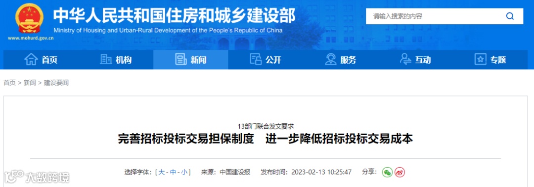 为加快推动招标投标交易担保制度改革、优化招标投标领域营商环境,国家发展改革委、住房和城乡建设部等13部门近日印发《国家发展改革委等部门关于完善招标投标交易担保制度进一步降低招标投标交易成本的通知》。