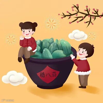 在中国北方地区有在腊八这天用醋泡大蒜的习俗,名“腊八醋”。腊八醋,要泡到大年初一,初一吃饺子,要吃素饺子,取一年素素净净之意,蘸腊八醋吃,别有一番滋味。