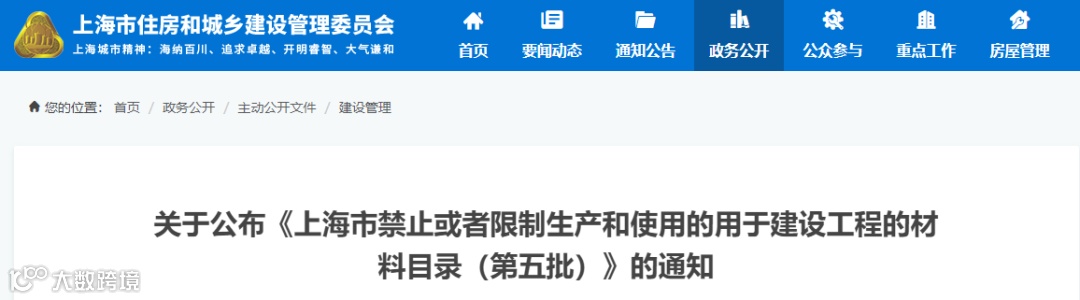 2020年10月13日,上海市住房和城乡建设管理委员会公布了《上海市禁止或者限制生产和使用的用于建设工程的材料目录(第五批)》。要求2020年11月1日前未通过施工图设计文件审查备案的项目以及2020年12月31日前尚未开始墙体节能工程施工的项目严格执行。