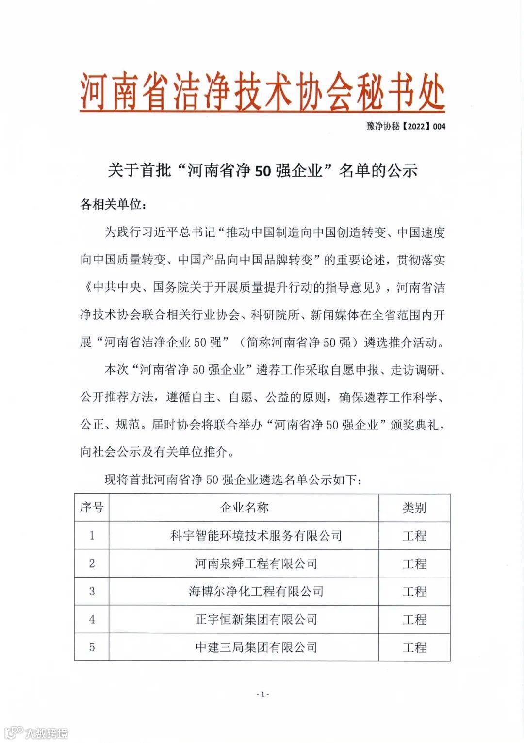 鹏森动态│热烈祝贺鹏森建设集团有限公司荣获河南省洁净技术首批“河南省净50强企业”