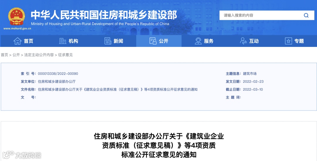 2月份,住建部发布关于《建筑业企业资质标准(征求意见稿)》等4项资质标准公开征求意见的通知(以下简称“通知”)。