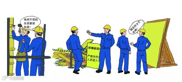 安装与拆除模板时不能采用猛翘、硬拉,大面积撬落和拉到的方法,防止伤人和损坏物料。