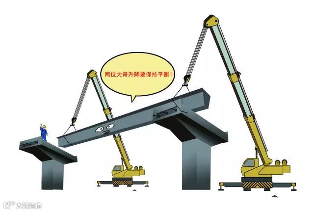1、吊装架设箱梁过程中,要有专人统一指挥,两车的升降速度要保持相等。吊物荷载要平均分配,每车分担的荷载不能超过最大起重量的80%;