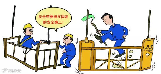 2、作业人员系好安全带,安全带不能固定在吊篮上,必须挂在单独设置的安全绳上;