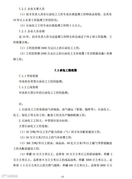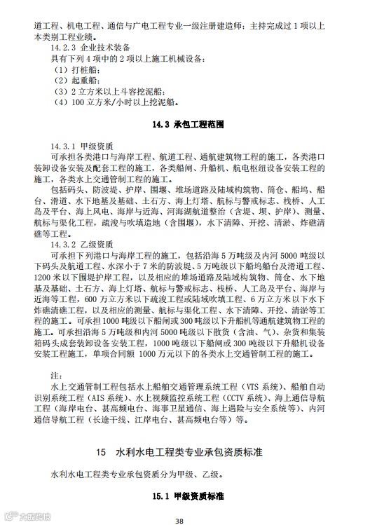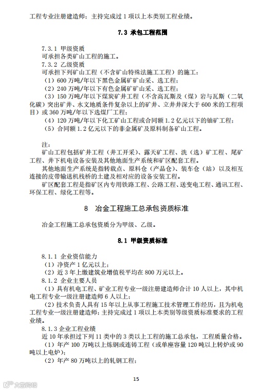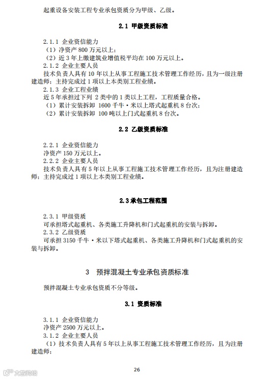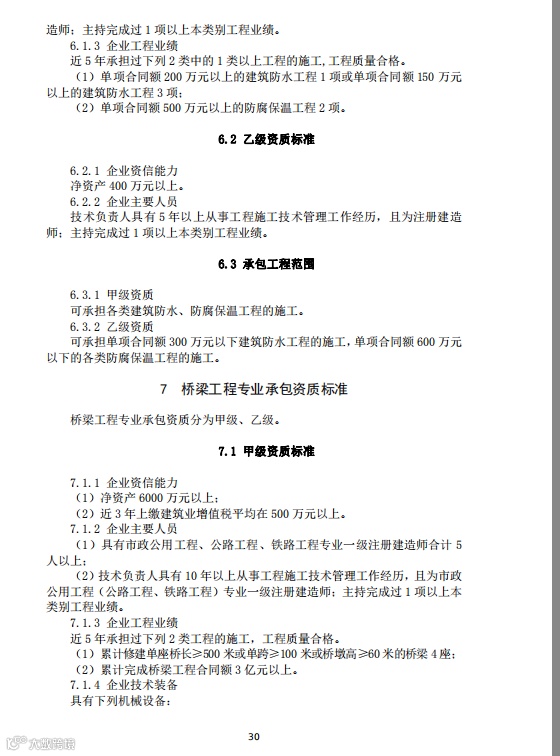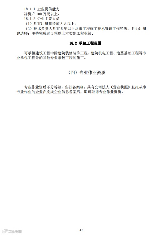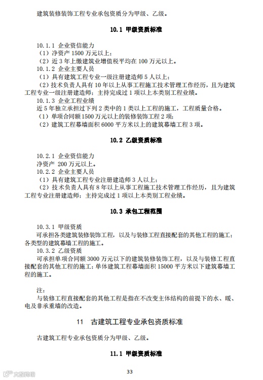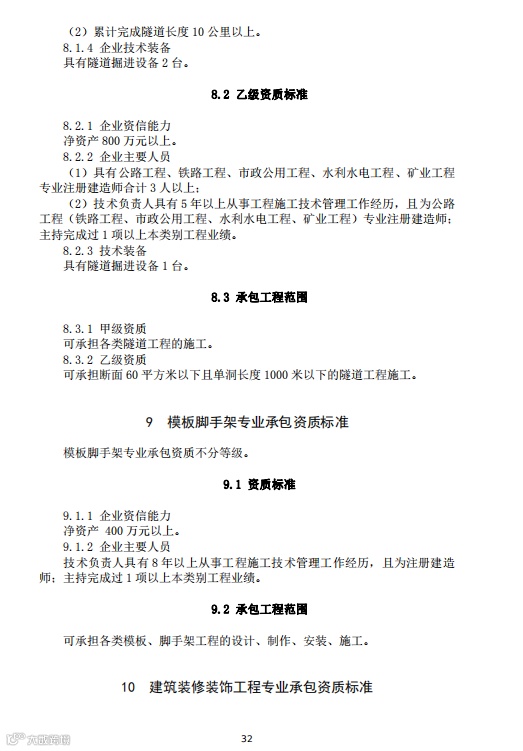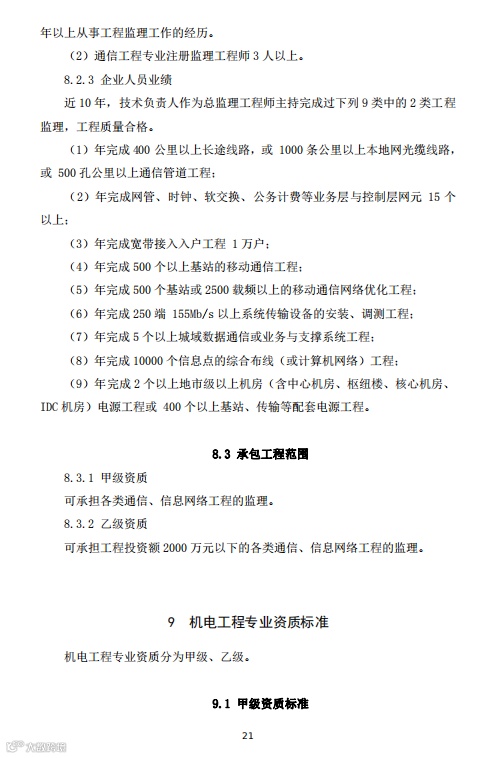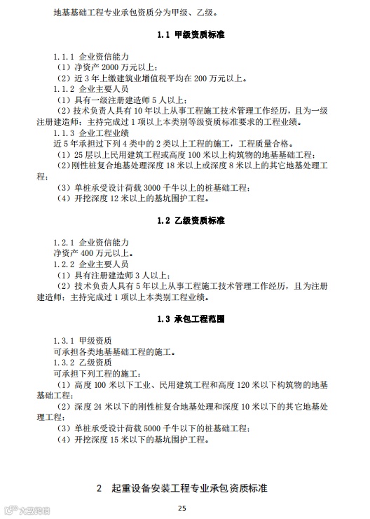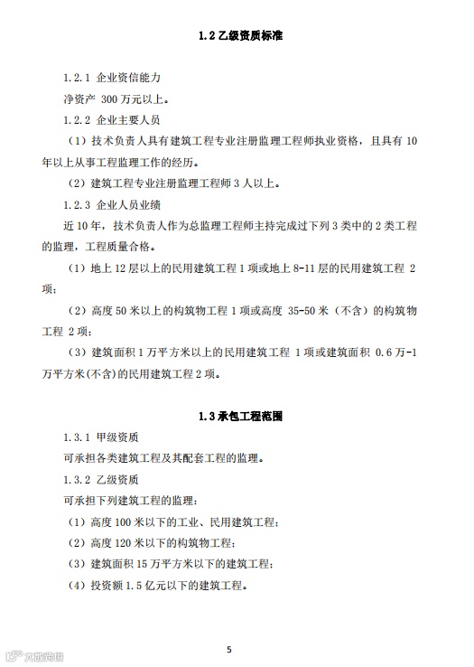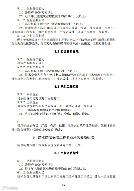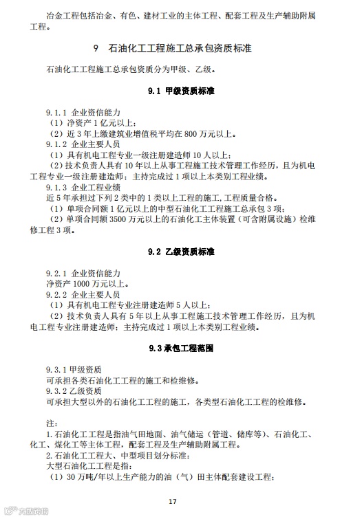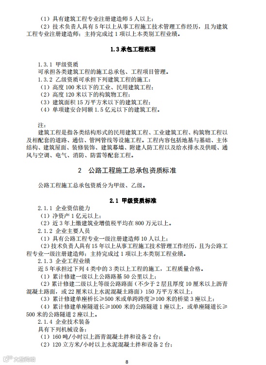 乙级资质承接的工程范围基本与原二级资质相同,承接范围大大增加,而建造师人数要求与原三级相同,再加上取消了职称和技工的要求之后,大大降低了门槛。