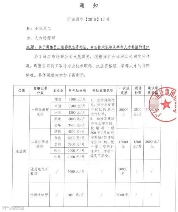 看完了一级建造师对施工企业的重要性,再给大家看一下一些企业对一级建造师的一些福利待遇。