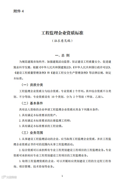 为落实建设工程企业资质管理制度改革要求,我部会同国务院有关部门起草了《建筑业企业资质标准(征求意见稿)》《工程勘察资质标准(征求意见稿)》《工程设计资质标准(征求意见稿)》《工程监理企业资质标准(征求意见稿)》(见附件),现向社会公开征求意见。有关单位或个人可于2022年3月10日前通过以下途径和方式提出反馈意见: