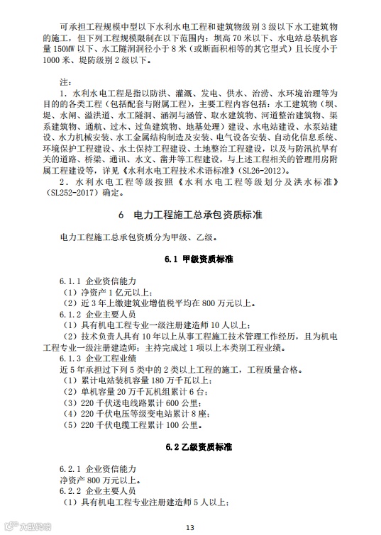 1、最大的变化:13类工程都要求技术负责人必须具有本类别专业的一级注册建造师,且完成主持过至少1项本类别的工程业绩。