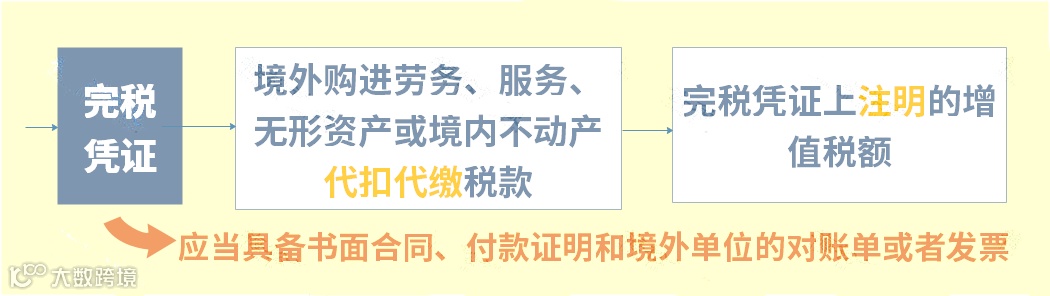 从境外单位或者个人购进服务、无形资产或者不动产,自税务机关或者扣缴义务人取得的解缴税款的完税凭证上注明的增值税额。