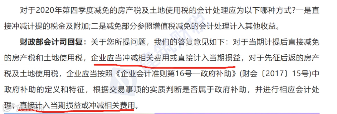 对于直接减免的税金,这个回答的意思也是,可以直接冲减税金及附加。