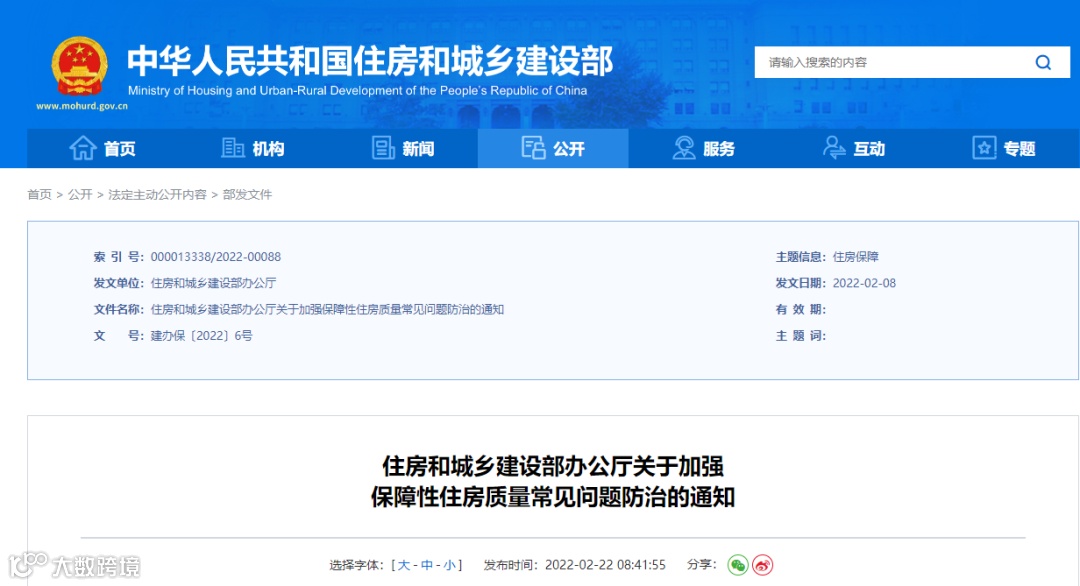 近日,住建部发布《关于加强保障性住房质量常见问题防治的通知》,其中提出: