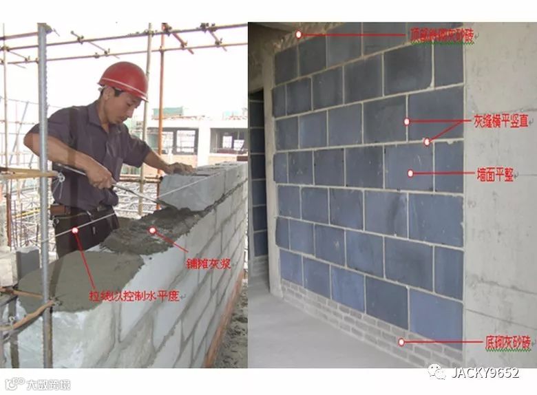 3、砌体工程的砂浆是否饱满,强度是否够(可以用手扳一下),砌体的放样如何,是否平直,墙面是否平整。砌体中的构造柱是否设槎,框架梁下砌体是否密实,圈梁是否按要求设置。墙面的砂浆找平层厚度是否过厚等。