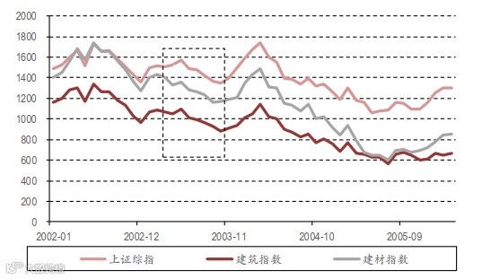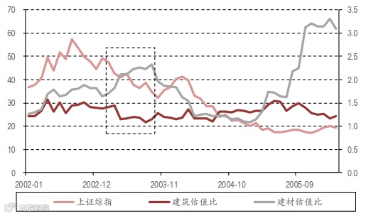 2003 年“非典”期间,上证综指以及建筑、建材行业指数整体阴跌,上证综指、建筑指数、建材指数 2003 年 4-8 月份跌幅分别为 5.9%、9.4%、12.3%。从估值的角度来看,“非典”疫情期间,大盘估值小幅下滑,建筑与建材行业指数基本保持稳定,总体看“非典”对建筑建材行业指数影响相对较小。