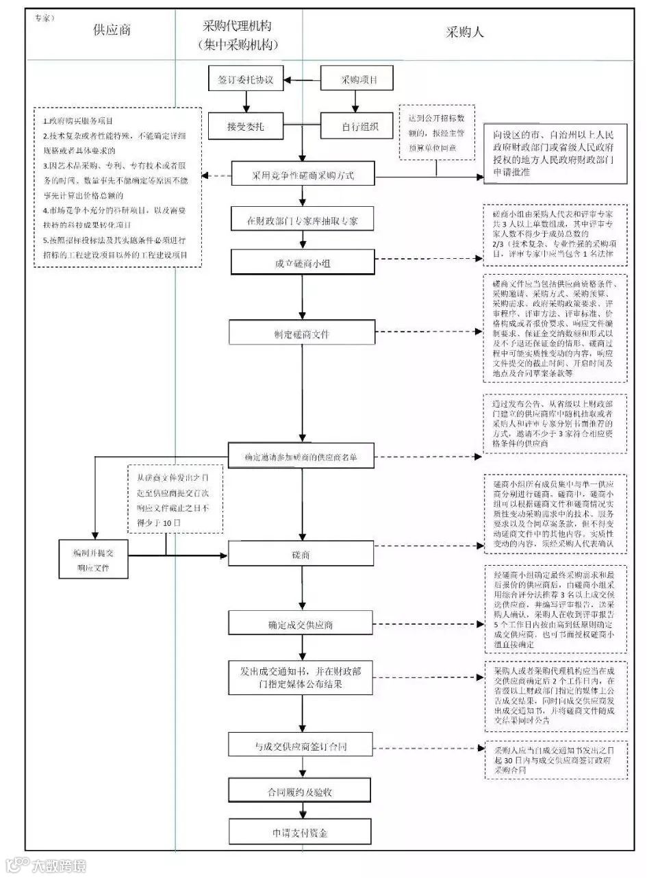 竞争性磋商,是指采购人、政府采购代理机构通过组建竞争性磋商小组(以下简称磋商小组)与符合条件的供应商就采购货物、工程和服务事宜进行磋商,供应商按照磋商文件的要求提交响应文件和报价,采购人从磋商小组评审后提出的候选供应商名单中确定成交供应商的采购方式。