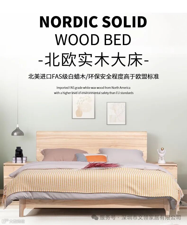 原木风北欧实木大床简约时尚