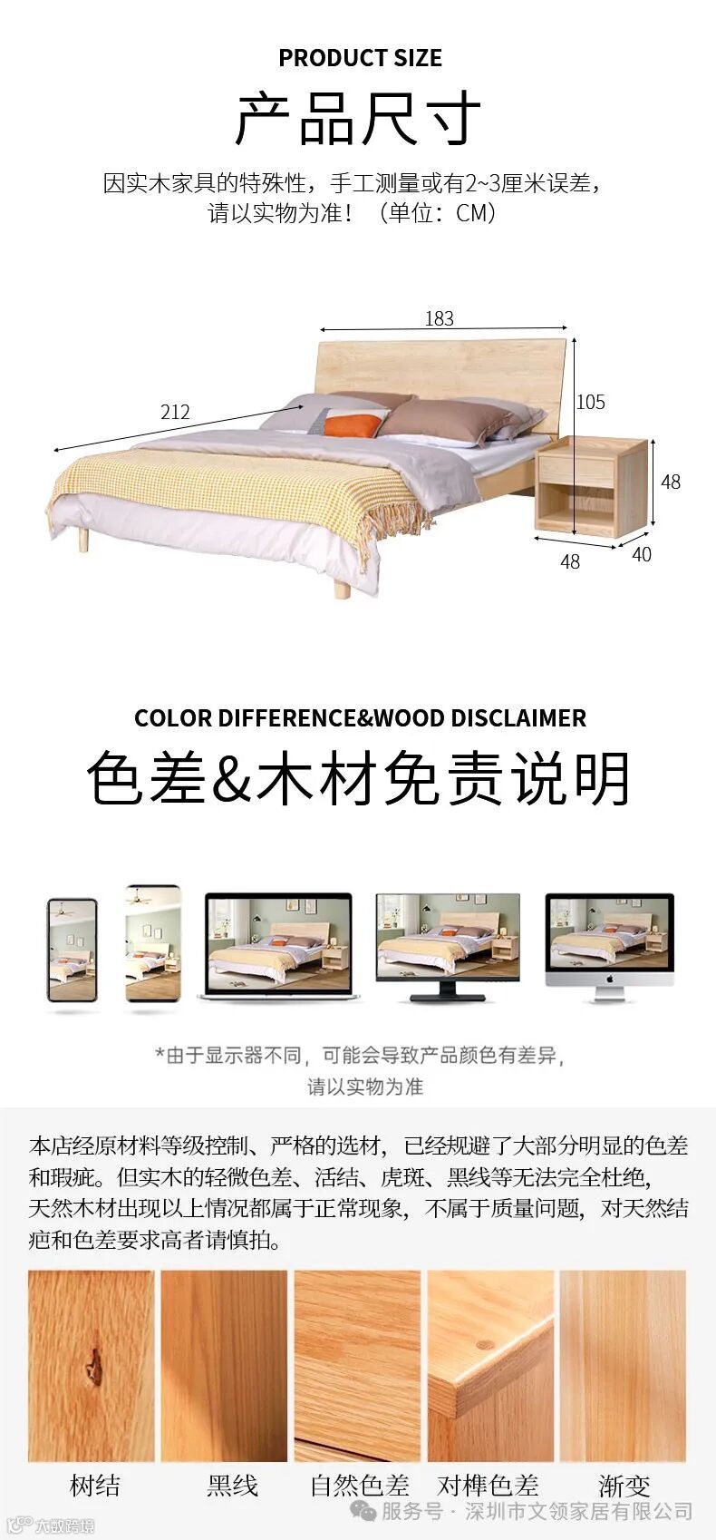 北欧实木大床进口白蜡木环保安全简约卧室现代实木家具