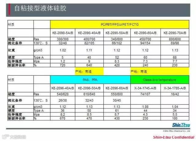 下面小编向各位读者介绍一款自粘接液态硅胶原材料。KE-2090及KE-2030是信越研发的自粘液态硅胶,可接触人体和体液,植入身体29日内。选择性接着液态胶KE-2090/2030系列,实现和塑料的化学粘接,高稳定性和高可靠性,与PC/PPSU/PCTG等塑料的粘接,在医疗、婴童及电子行业有多年的应用经验。