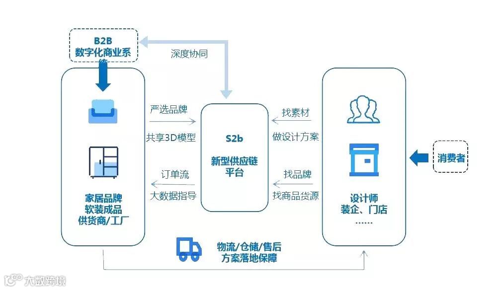 是在B2B2C数字化商业系统将家居制造业、渠道门店与广东日日顺名家居的深度协同基础上,面向经销商、装企、设计师等行业用户,提供AI智能设计、极具丰富的SKU、新型供应链及全流程系统矩阵,把产品、工具、落地服务变得更加智能化,让各端高效协同,推进软装产业一体化发展。